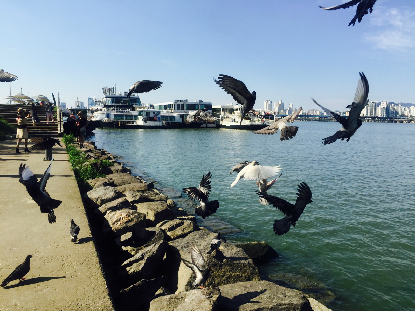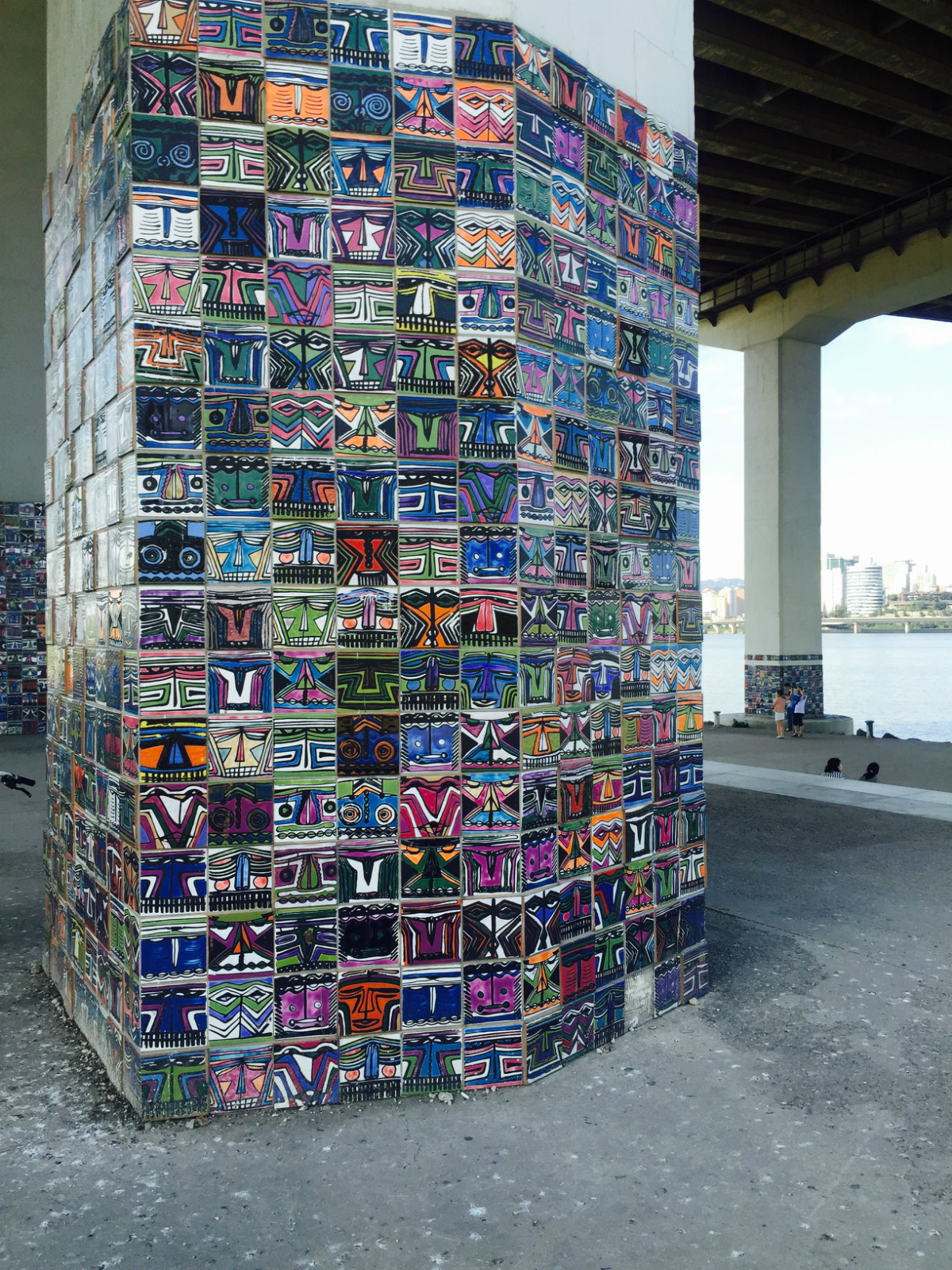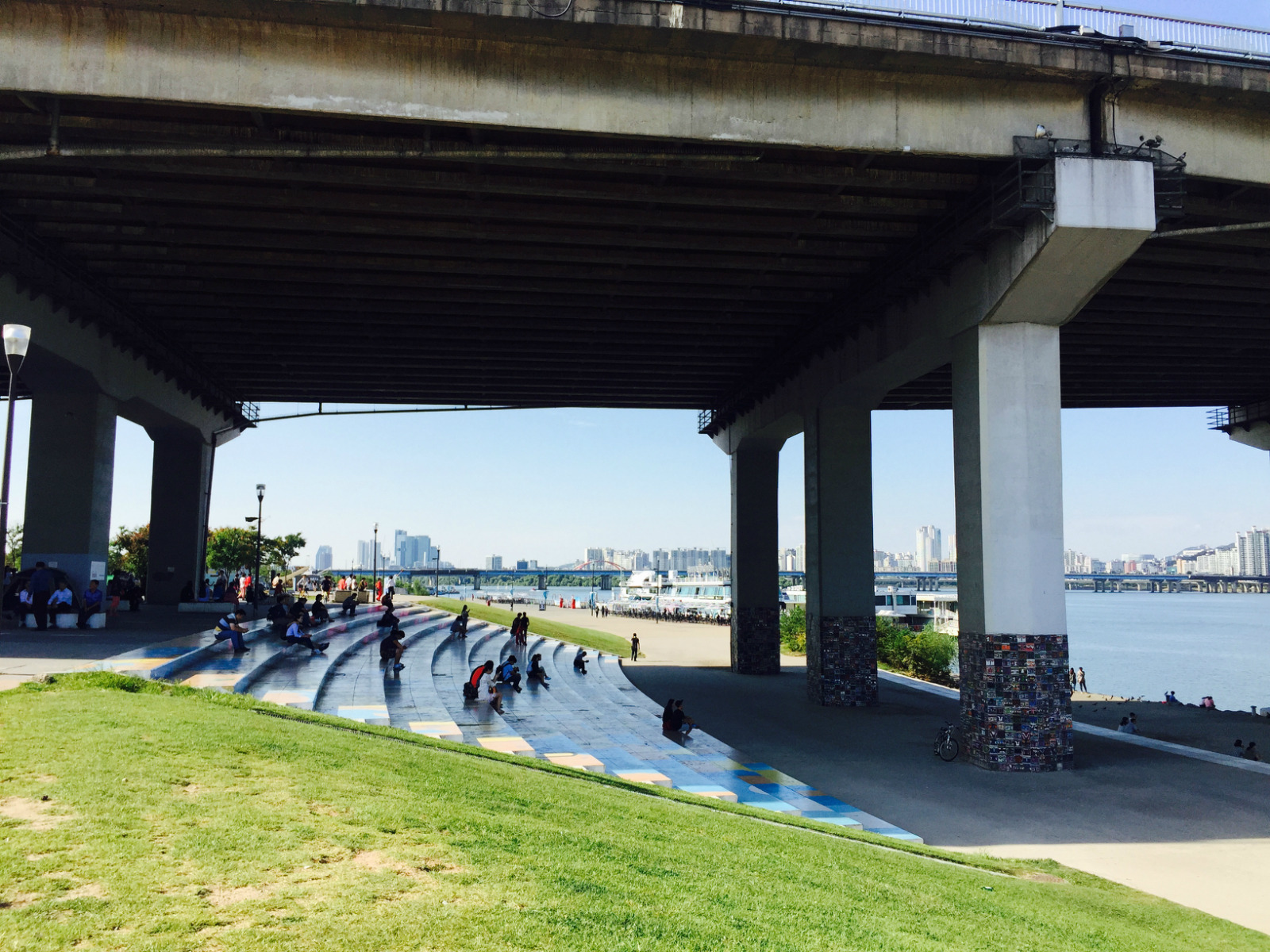 【游览印象】与元晓大桥结缘是因为在这里等待乘坐E.LAND汉江游览船的半个小时,元晓大桥除了宏伟壮观的外貌,最让我印象深刻的是桥底下元晓多乐阶梯,它是韩华和首尔推出的全新作品,该作品从年轻感性角度出发,对元晓大师“一切唯心造”思想经过重新解析描绘出全新风格,沿着阶梯走,会看到一个个首尔象征性图案,如63大厦、N首尔塔等。许多游客在这里休息,还有人搭个帐篷纳凉,微风徐徐,真的非常舒服。此外,还有许多鸽子在附近飞飞停停,很有趣!