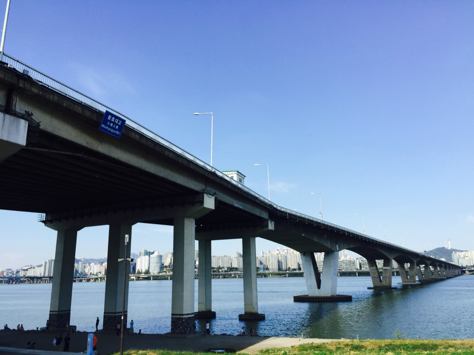 【简介】美丽的汉江上横跨了许多座桥:西江大桥、麻浦大桥、汉江铁桥、汉江大桥、铜雀大桥等等,元晓大桥只是其中之一,位于麻浦大桥和汉江铁桥中间。元晓大桥建成于1981年,桥面宽20米,全长1120米。