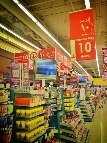 说来好笑,我们最期待的事情之一,竟是好好逛逛阿布扎比的家乐福。如果小于10件物品,则可在这里结账