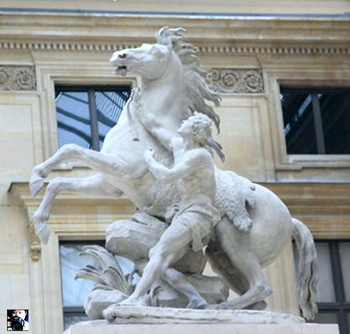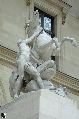 《马利骏马》的两个驯马的勇士是希腊神话中的两兄弟,Castor(卡斯托尔)和Pollux(波吕克斯)。他们兄弟两人是宙斯与Leda(列达)的儿子,他们的妹妹是海伦,宙斯与列达的女儿,一个引发了特洛伊战争的希腊美女。而这两个兄弟酷爱战马,荷兰画家作者鲁本斯的《劫掠留基伯的女儿们》讲述的就是卡斯托尔和波吕克斯抢夺留基伯的两个女儿Phoebe和Hilaeira作为自己的妻子,并且杀死了这两个女孩子未婚夫的传奇故事。