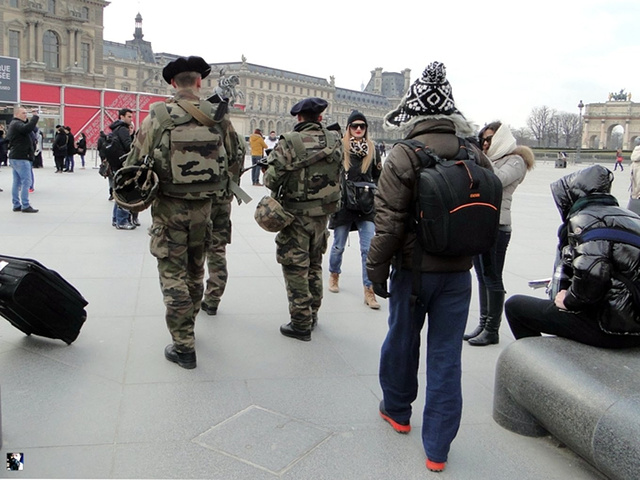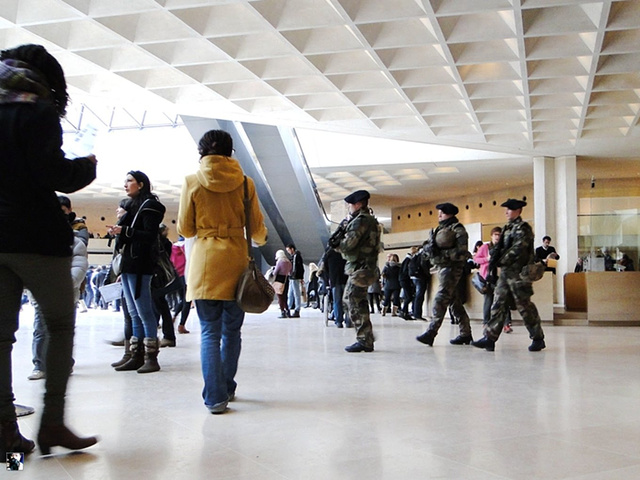 由于我们事先已经换好了门票,所以可以不用排队,而由工作人员安排直接插到最前面进行安检了。(顺便说一下,卢浮宫周二和某些节日闭馆,平时开放时间为9-18点,周三、周五开放至晚上21:45时。这里是有免费的寄存服务和中文导览图。)
