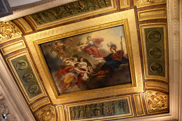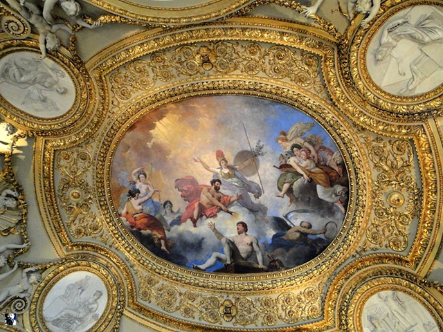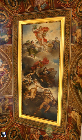 出了画廊,继续参观其它地方。走廊上的穹顶总算比较朴素一点了,但是王家气派照样扑面而来。