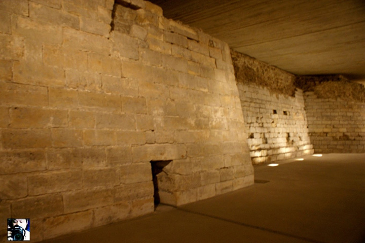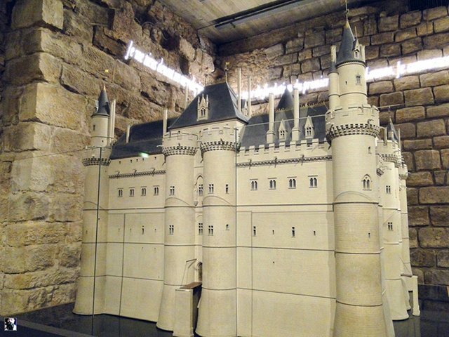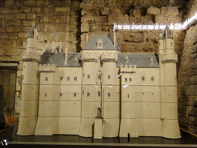 中世纪城壕遗迹的模型是十四世纪查理五世统治时期的卢浮宫。这座城堡长78米,宽72米,四周有壕沟围绕,并建有多座圆柱形高塔以保障每一面的防御,中心建有一座巨大的城堡主塔。十六世纪时,法国国王弗朗索瓦一世决定新建一座文艺复兴风格的宫殿。卢浮宫中心的城堡主塔被完全移平,城壕也被土填满。但是方形中庭下方深七米的城壕得以完好地保存下来,并在1983-1985年的挖掘工作中重见天日,于1989年卢浮宫金字塔落成时开始向公众开放。