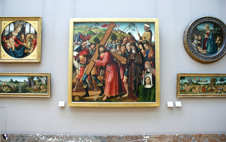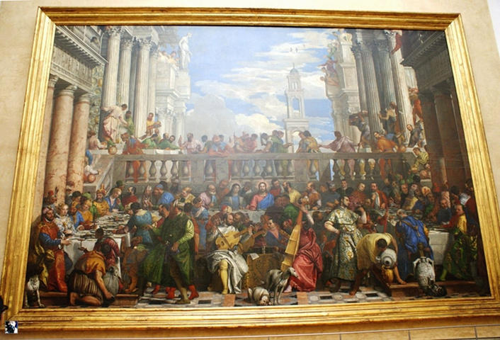 Les Noces de Cana(《加纳的婚礼》),又名《加纳的婚宴》,作者Paolo Veronese(保罗·委罗内塞)是16世纪威尼斯画派中的一位现实主义大师,以创作多人物的大场面作品著称。此画创作于1562-1563年,高16650px,宽24750px,是卢浮宫最大的油画作品。此巨幅油画曾用于装饰威尼斯的San Giorgio Maggiore(圣乔治•马乔雷)修道院。