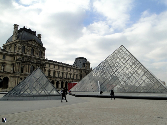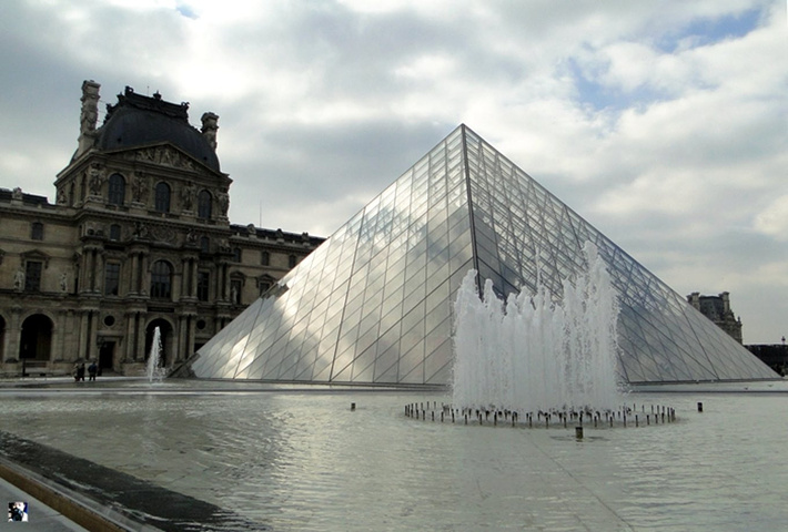 宫前的玻璃金字塔形入口,是华人建筑大师贝聿铭设计的。