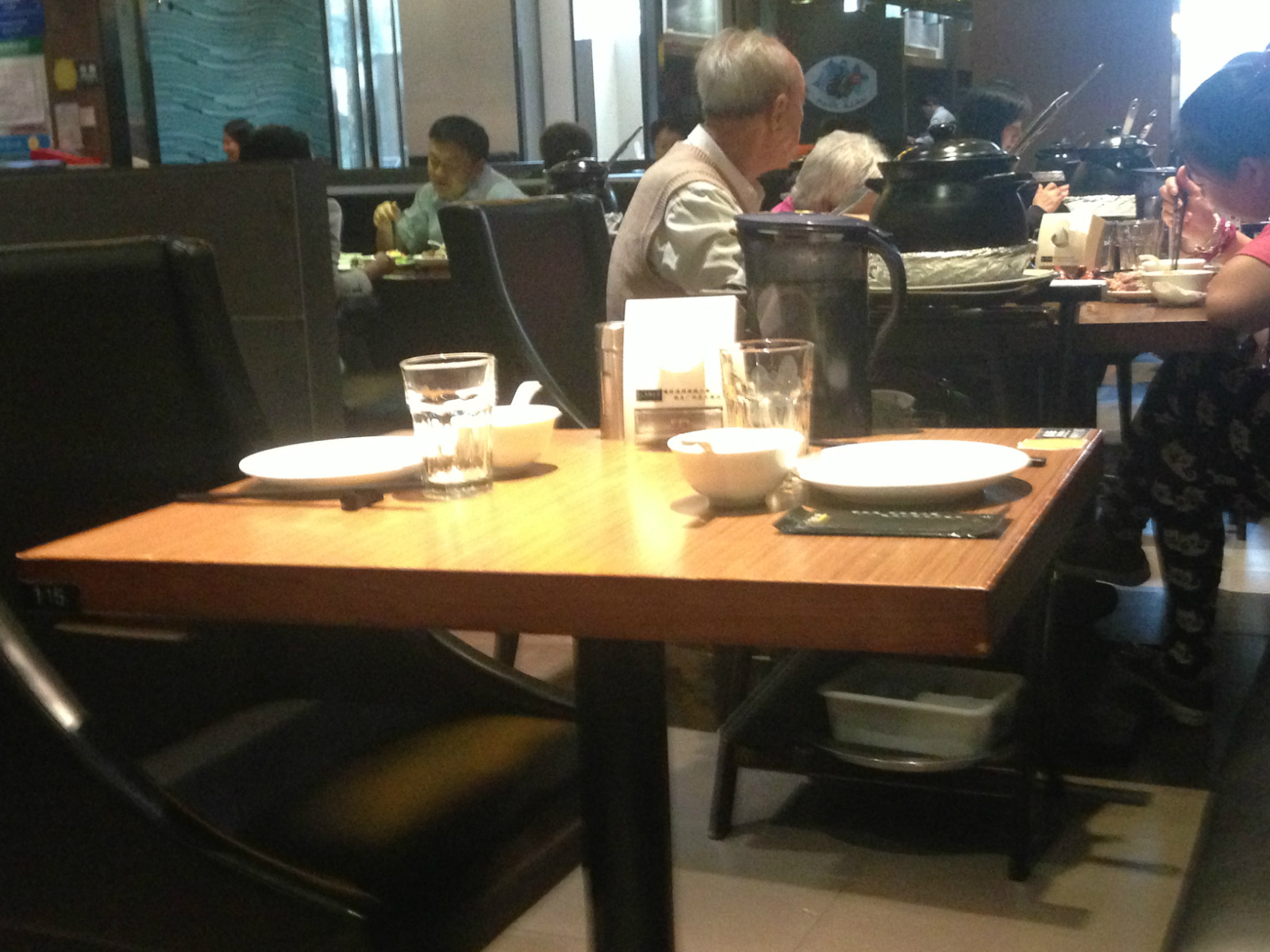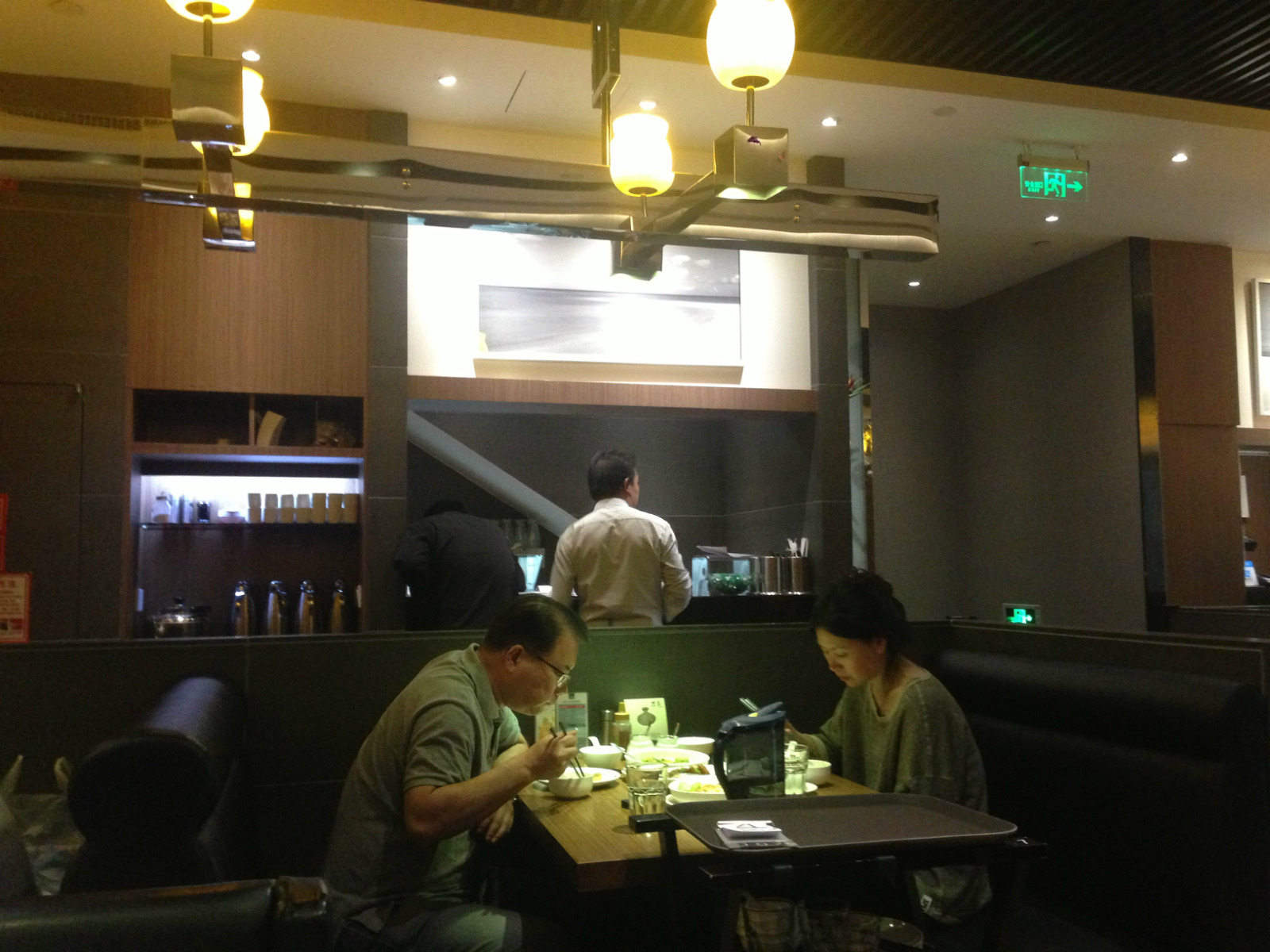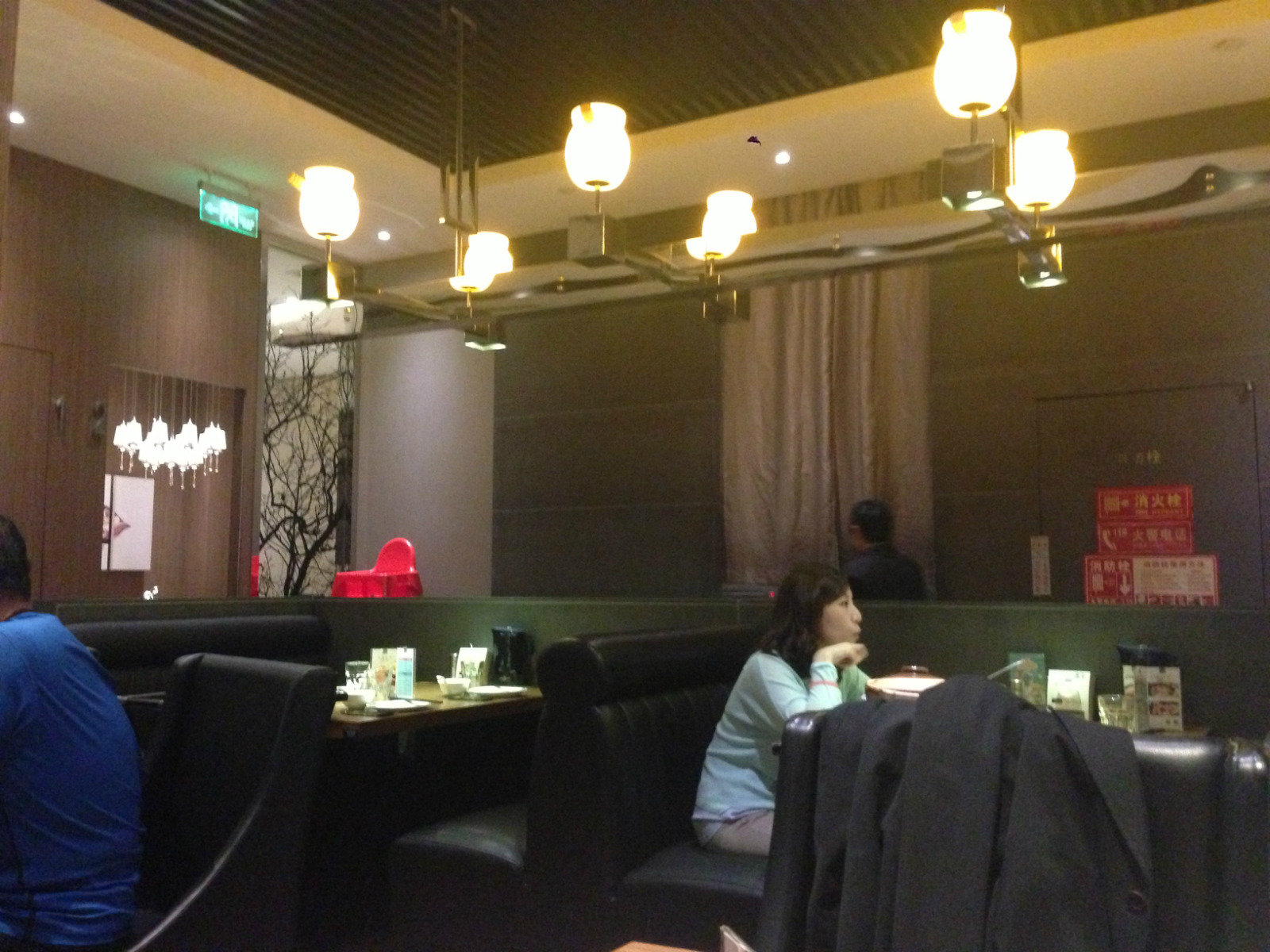 餐厅位于蓝色港湾室外美食城的一边,处于拐角处,靠近港湾商业区附近而且标志也很显眼,很容易就能够找到。餐厅一共有两层,外围还专门设置了户外餐桌,旁边有一张公共菜单,供客人们浏览选择;从前门进去有个回廊,之后就是大厅,里面摆满了各式餐桌;大厅内的整体环境略微显得低调素雅,虽然顶部有许多顶灯,但是可能采光不足,总体感觉这里还是略微有些阴暗的;大厅内的卫生做得很到位,不过位置的排列相对很拥挤,感觉不是很好。