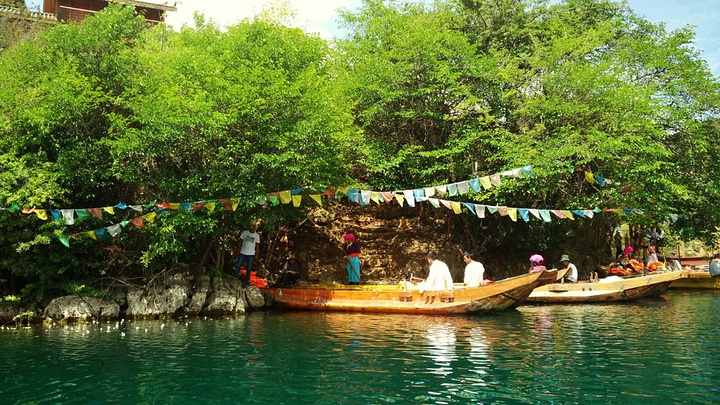 环湖第二站,五支洛村草海,这里就是泛舟湖面的码头了,坐船70元/人。在码头上,有一大片的草地,伙伴们就疯癫了,各种跳跃,旋转。。。。