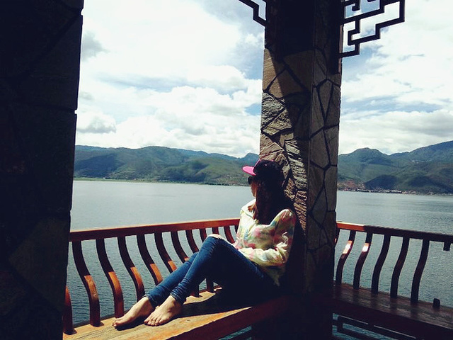 安静地坐在岛上长廊,远望这片静谧的湖水,内心也归于止水。