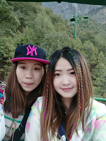 然后就是坐这种索道,全程大概要20分钟吧。开始很低,越往上越高。椅子四周没有什么安全防护,双脚都是悬空的,到了很高的地方还真的有点怕怕的呢!