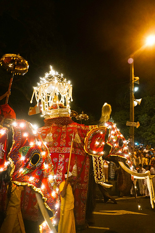 佛牙节是康提最盛大的一个节日,没到这个时候,各地寺庙会供奉大象参加游行,当地也会载歌载舞的庆祝这个节日。因为非常幸运的碰到这个一年一次的节日,所以我们决定留下了参观。在游行的必经路上,大部分当地人选择坐在地上观看,把人行道全部占满了,根本连下脚的地方都没有。另外临街的商户会摆很多凳子在他们门口提供给有钱人或者游客,但这不是免费的,是需要支付较高的参观费的。5点左右,我们去询问一个位置的价格,要5000卢比一个人,而且据说还给我们打了折的,之前他们告诉我们这包含了晚餐,可是当我们准备付钱时又告知我们不含晚餐,所以我们果断的离开, 到附近的必胜客吃了晚餐,一个小时回来后,我们再次询问,告诉我们7000卢比2个人,经过讨价还价,最后以5500两人的价格成交,大大节约了一笔,所以要看表演的朋友可以稍微晚点再去买座位。游行从7点半开始,大概持续2个小时,因为我们座在中断,节目没完我们是不能走的,就这样看完了整场节目。游行的表演基本是男性,每个队伍完以后都会有1-3只大象跟着,分别挂着白、黄、蓝、红色的彩灯,表演的节目都千篇一律。不过既然遇到了,还是建议感受一下节日的气氛。 第二天住宿:康提 Mango House by Uma 可作为过渡,房间采光不好