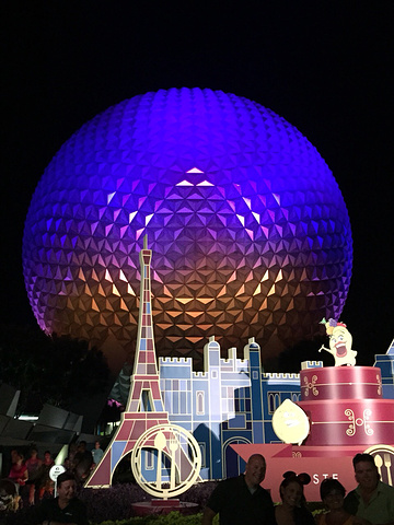 没想到快9点才从Epcot出来,夜幕下的大圆球,跟白天感觉完全不一样啊。
