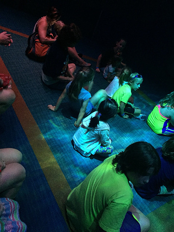 儿童坐在前面地上,听Turtle Talk,需要回答问题或提问。闺女还举手多次,可以没有被叫到。