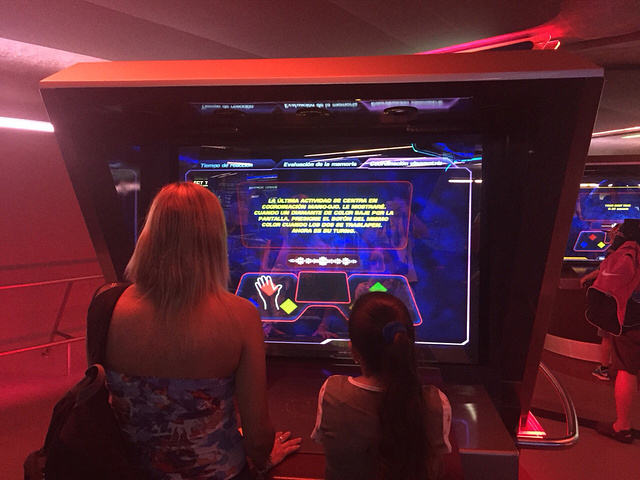 迪士尼世界第三天 之 未来世界 Epcot Fast Pass 1: Spaceship Earth,坐着小火车探索从石器时代到数码时代的人类发展史。坐完火车,出来可以玩儿益智游戏,锻炼左右脑的和手眼协调。 Fast Pass 2: Test Track by Chevrolet 这是我本人觉得最刺激最好玩的项目,首先设计自己的概念车,闺女设立了一个粉色小轿车。然后6人一辆赛车,开始模仿试车场试车。有急加速,急转弯,急刹车,湿滑路面等,绝对推荐喜欢车的朋友来玩儿! Fast Pass 3: Space Mission 太空使命 进入时工作人员会问你要More Intense or Less Intensr也就是强劲模式还是普通模式的。我们选了强劲的,事实证明的确强劲给力!完全模仿火箭发射的感觉,宇宙飞船飞向火星。有很强的压力感。