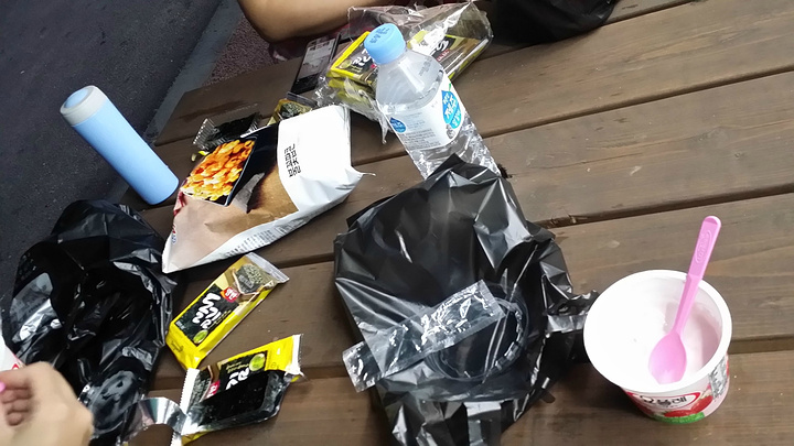 晚上本想去附近找特色的帐篷马车,但走了很远都没见到有街铺,就在便利店买了点吃的,在便利店旁边的桌椅上吃东西,也是很多韩剧里出现的情节。