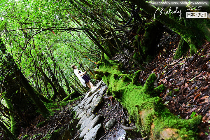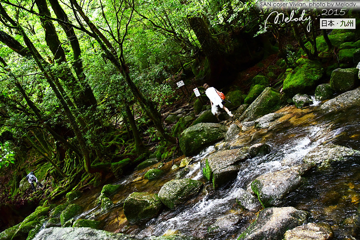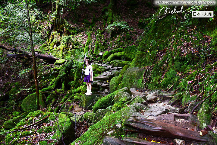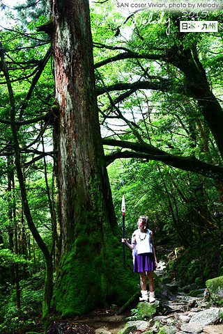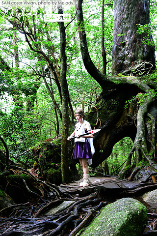 【白谷云水峡 ——宫崎骏《幽灵公主》取景地】 自从宫崎骏的动画《幽灵公主》在屋久岛取景,屋久岛开始闻名,而开始盛行观光业。知名的景点包括有屋久岛的白谷云水峡,千寻瀑布等。屋久岛上有不少温泉,还有特别的海中温泉,称为平内海中温泉。屋久岛上由于森林密布,而且高山地带受到保护没有开发,野生动物还相当多,包括有屋久鹿和屋久猿都是常见的野生动物。(摘自网络) 我们在白谷云水峡徒步时,很lucky的看到了野生的鹿和猿猴~ 白谷云水峡是流动于屋久岛北部的宫之浦川支流白谷河的溪谷。 这一带由于雨量丰富,花岗岩被侵蚀后形成的太鼓岩等的巨大岩石连绵展开,覆盖着茂密的原生林。原生林就有让鹿儿岛人非常自豪的有3000年树龄的“弥生杉”。 在白谷云水峡,可以尽情欣赏屋久岛的代表性植物——“屋久杉(Yakusugi)”——特指树龄在1000年以上的古杉树,其中一些树木的直径达到5米。在云雾缭绕的高山地带生长的杉树,能从叶子和树枝上长出复根,姿态千奇百怪。1966年发现的一棵生长在海拔1350米高处的古杉树被命名为“绳文杉(Jyomonsugi)(树龄在2170年~7200年之间)”。 绳文杉一词的由来是基于日本历史,日本在石器时代后期曾发展出绳文文化,距今约有6000多年,绳文杉的年龄据考察之后,约定为有6000多年,由于时期相近,加上屋久岛岛上发现不少绳文时代的文物,就因此定名了。 (摘自网络) 一下子贴了这么多简介,下面开始安静的贴图,大家一起欣赏这个激发宫崎骏大师创作灵感的地方吧~ (特别鸣谢友人的cosplay,cos角色为《幽灵公主》女猪脚SAN)
