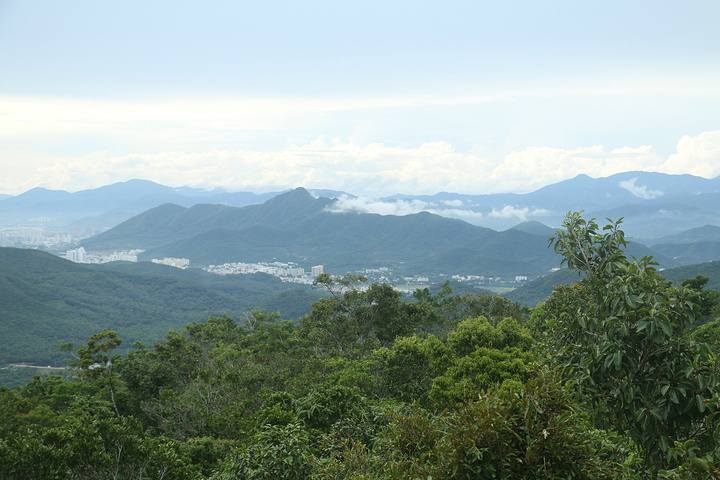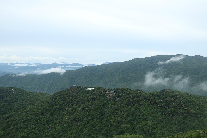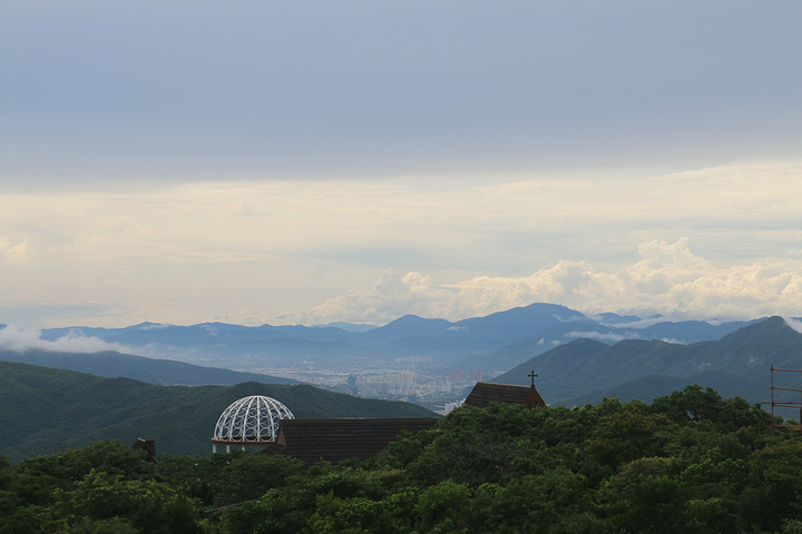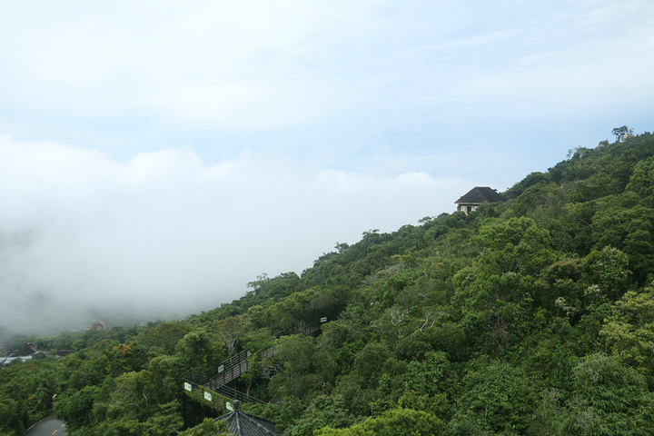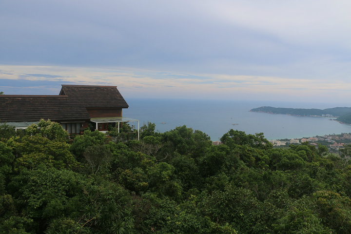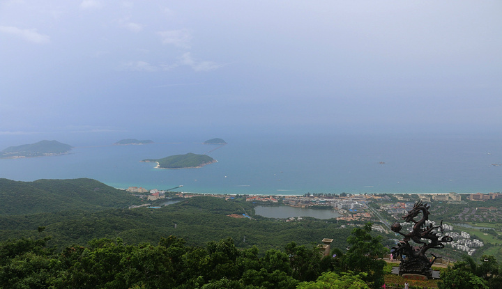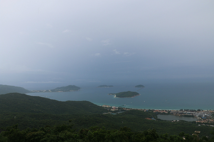 2、森林山顶那个塔。 这个景点叫什么忘记了。我带他来森林公园就是奔这座塔来的。可以将亚龙湾的海景一览无遗。不过因为下雨,看得不是很清。
