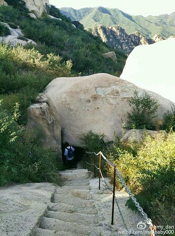 原本计划去八达岭国家森林公园,但十一的车流量让我们开上京藏后望而却步,2个多小时的红色拥堵。及时调整路线,转而去翠湖湿地公园,居然木有开门。命运让我们最终选择了白虎涧,又称北京的后花园,看看这一路没车的沿途和景区,简直不敢相信这是十一的帝都!看评论四颗星,想象着一片鸟语花香,小桥流水,美滋滋的前行!最终,除了门口的几处小花坛,这个景区是有史以来集合惊险陡峭野趣匍匐各种高难度于一体的攀爬景区。昨天景区内10公里,用时4个半小时,在各种指示不清道路拦截披荆斩棘下,能顺利找到出口已是大幸!一上来先是在艳阳下攀爬了五六十层的镂空楼梯(图五),期间伴随着各种我与臭大姐无名昆虫作战时的尖叫;紧接着开始淌一人多高的野草阵,成群的蜜蜂在耳边嗡嗡作响60元一张的门票,却基本都是乱石野路,也不知道景点的五颗星是不是自己封的景区最有趣的是81洞(最后一张是寻觅了9公里多终于到达的洞口),回过头想想,误打误撞的将最有趣景点留到最后也算完美!否则,80%以上是乱木丛生拽铁链攀乱石路段,最终必须用坑爹来形容。提示大家,停车不收费,景点有团购票(60元两张)。山路陡峭,一定穿登山鞋。