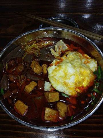 这家的位置是在花溪湿地公园的对面,店面不起眼,实际上里面并不小,而且来吃的人很多地,店也算是比较干净的。这次点了肠旺面加血旺和蛋,一共13元,不贵的。另外他们家的小菜例如酸萝卜等是可以自取的。性价比很高的店。