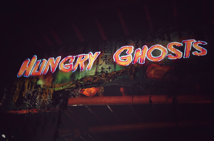 “恶鬼村”是荒废的村庄,旧历七月的诅咒从此阴魂不散,每到深夜,上映一幕幕毛骨悚然的画面;鬼婆婆默默地拿着扫帚徘徊在古旧的神台周围,中式的香炉蜡烛八卦镜,青烟袅袅让人不寒而栗;远处穿红衣红鞋撑红油纸伞的女鬼在尖叫得不到丈夫的爱含恨而死,隔壁化妆京剧妆的花旦捂嘴偷笑,巨大的木棺材伴随里面敲打和怒吼的声音,满身湿透的小女孩瑟瑟发抖问我们归家的路,阴森恐怖。烟雾弥漫地山路,小心一脚踏进鬼门关,再无回头之路。