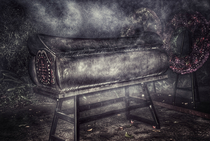 鬼婆婆默默地拿着扫帚徘徊在古旧的神台周围,中式的香炉蜡烛八卦镜,青烟袅袅让人不寒而栗