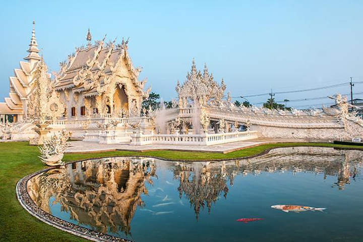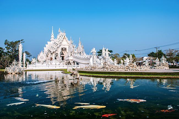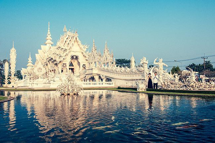 天亮了,白庙也褪去了金色,这时候大批大批的游客也陆续到来,我是选好了角度,蹲了半个小时,才拍到一张鱼多没人的图!摄影师真心不容易啊,幸好以前军训哥蹲姿学得好!(尼玛,能不好么?要知道哥中学时被罚蹲过一个通宵啊,扯淡是SB。)