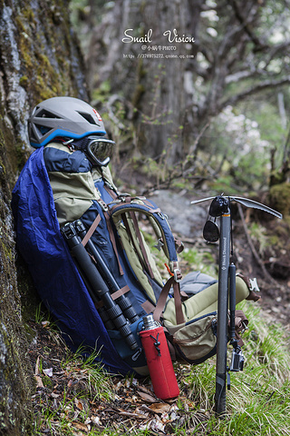 这是我这次出行带的装备,虽然算是精简了又精简,但是还是与其他队友来讲偏了很重!登山包本身5斤,包里有睡袋、炉头、锅具、气罐、两个对讲机(完全没用),三件衣服和两条裤子,雪套、3个主锁、上升器,8字环,头盔、眼镜、牛尾、抓结、两对快挂、一双高山靴、12齿冰爪、冰镐、百诺三脚架、5D2相机和50定焦+24-70两个镜头。六个鸡蛋(根本没吃)、牛奶、八宝粥、醪糟、三盒方便米饭等等!总重量在50斤左右