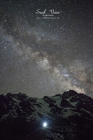 6月1日冲顶当天,协作一点20分叫起床,今天我们是从4400米的C1 直接冲动到5430的TOP,然后再下撤到3600米的BC,早晨起来见银河横空,我没有去做饭,烧水,直接扛着相机去拍银河, 我以为我的两位兄弟会帮我做饭烧水,结果不然,两点拍摄结束,发现我还没吃饭,水壶没有水,部分队员已经和协作开始出发,而我和另外一个队员还在烧水吃方便米饭,带上300ml水和吃了两口方便米饭两点半最后一位出发了!