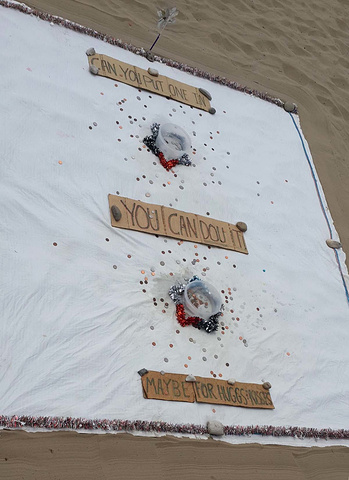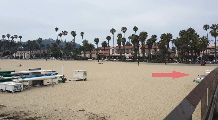 看栈桥北侧,沙滩上面,猜猜我箭头所指的地方会是什么?
