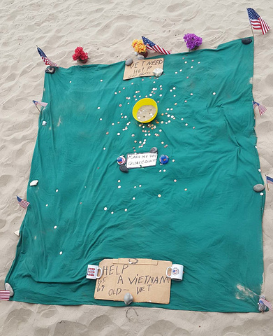 再看桥南这侧,真是分工不同呀,又是野餐,又是比基尼日光浴的。注意远处棕榈树下面,艺术家的天堂,马上跟随我们的镜头过去看看。