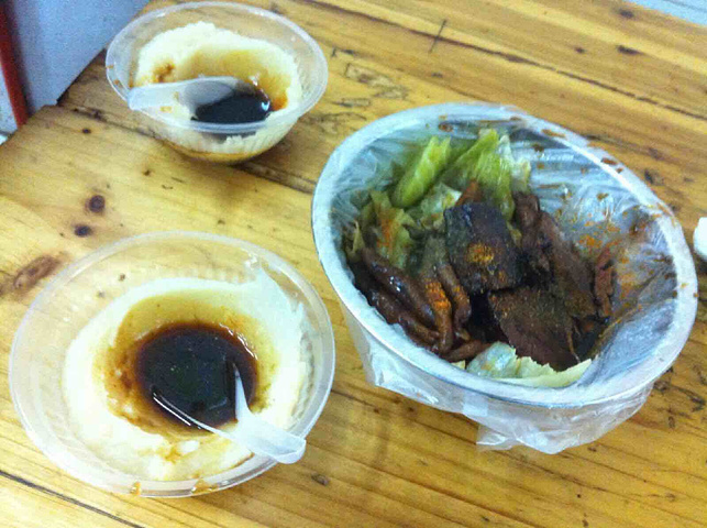 说到熊猫姨鸡爪推荐的当然是鸡爪,鸡爪是这里的招牌菜。熊猫姨鸡爪店面很小,大概就三张小桌子配上小板凳,在里面吃感觉很拥挤,萝卜去吃一般都是打包带走。店面墙上贴满了老板娘和各种明星的合照,连汪涵汪策神都来这里吃过。店面虽小,但很有特色。店里所有的菜单都贴满了墙面。看着满墙的菜单还是蛮有意思,鸡汁香干、灵范得乐、蠢得死、火腿肠,这些菜名霸占了整个墙面。来这里的肯定会点鸡爪,鸡爪煮得很烂,入口即化,煮烂的鸡骨头都能吃下肚。【推荐】鸡爪:小鸡爪,煮的很烂很入味,鸡爪经过长时间的炖制后入口即化,柔软无比,其料汁也是长时期高汤炖煮而来,可以做到吃鸡爪不吐骨头。土豆泥:土豆泥很粉,里面应该放了鸡汤,很好吃。灵范得乐:也就是冰可乐,冰的程度刚刚好,萝卜猜想应该是冻成冰然后再慢慢解冻的,可乐里的冰软软的,入口绵绵的感觉。【注意事项】这家店菜名都很有特色,灵范得乐就是冰可乐,蠢的死就死冰开水。老板娘常开玩笑说喝蠢得死要带着感情去喝,才能喝出其中的味道。QQ蛋就是小卤蛋,咬起来很有Q劲。【位置】地方就在韭菜园的一条巷子里 也可以从芙蓉路的八一桥那过去。从单记顺桥走到桥尾 然后在十字路口右拐几十米就了。【营业时间】上午十一点到凌晨四点。