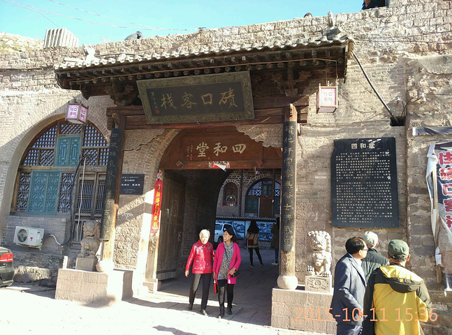 四和堂是碛口古镇是一座保存比较完整的老宅,现已成为游人的住宿客栈,看上去不大,但进去才知道是一座两进的双层院子,有近200间房子,屋檐上龙头石雕保存完整,站在一层楼顶上当年一定能够看到波涛汹涌的黄河之水天上来,如今黄河失去了以往的景色,站在那里依然景色秀丽。 现在的客栈主要为南来北往的写生住宿,每晚100元左右。