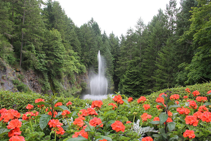 到达维多利亚的Swatz Bay码头,直接开车到达布查特花园。这座以四季鲜花盛开闻名的布查特花园位于市区北侧21公里处,是维多利亚著名的观光胜地。此处曾经是一处煤炭采集所。1904年,乔尼·布查特(Jonny Butchart)和他的夫人开始把这里整理成庭园。花园占地达22万平方米,园内分为五大区域——森肯园(Sunken Garden)、玫瑰园、日本庭园、意大利庭园、地中海庭园。在这个花园内,大约有25万朵鲜花竞相开放。前来观赏的游客无不惊叹这里的美景!