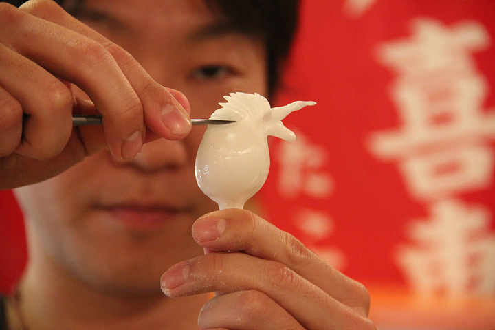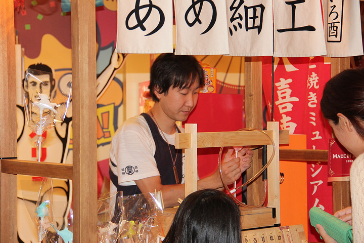 女儿没有见过捏糖人,被深深吸引。500日元一个糖人,700日元现场捏一个。女儿挑选了独角兽马,然后认真的看着帅锅像变魔法一样,将小小的糖团捏成玩偶。