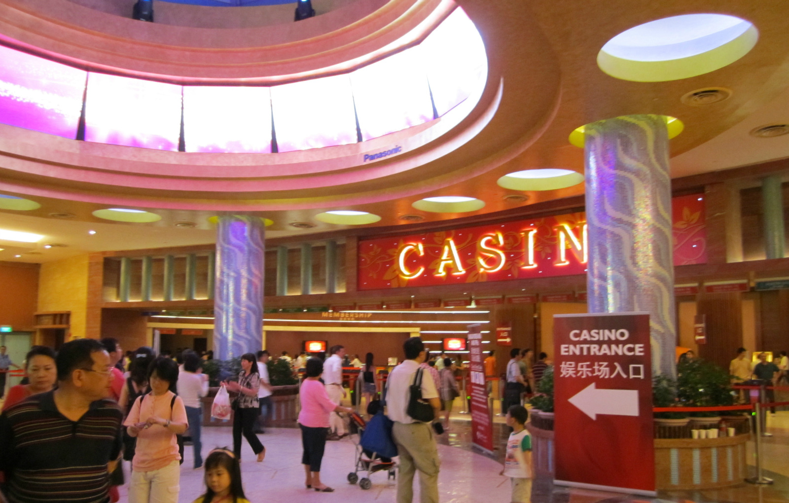 新加坡的赌场对于外国游客是免费的,有兴趣的人可以进去参观参观,但是对于新加坡本地人那是要10新元的门票,但是这点并不影响赌博人的兴趣,赌场里面的人很多,热闹非凡,每个人都想在赌场里赚一票,但是我想提醒各位还是要适可而止呀,毕竟赌博是有风险的。