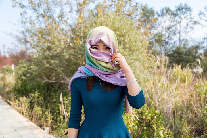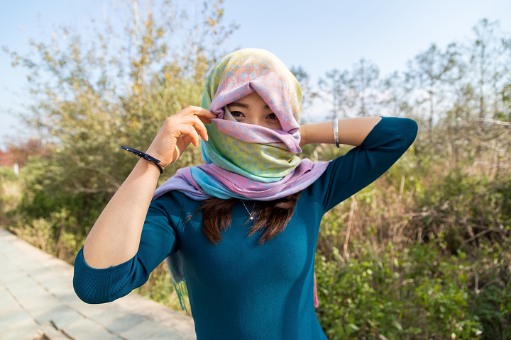 围巾变头巾,教你如何防晒防风。