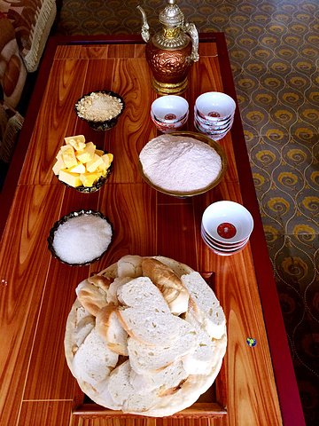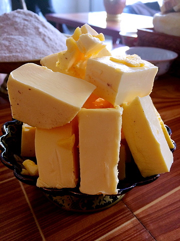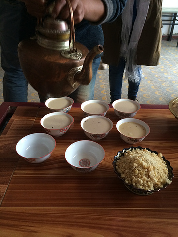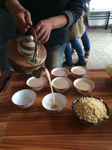 大姐家特别热情,给我们做的酥油茶,好好喝~~ 我和另一个男生各自喝了五六碗,根本停不下来~酥油茶和内蒙的奶茶都是助消化的,味道也差不多,只不过酥油茶里面加了酥油,所以味道有些不同