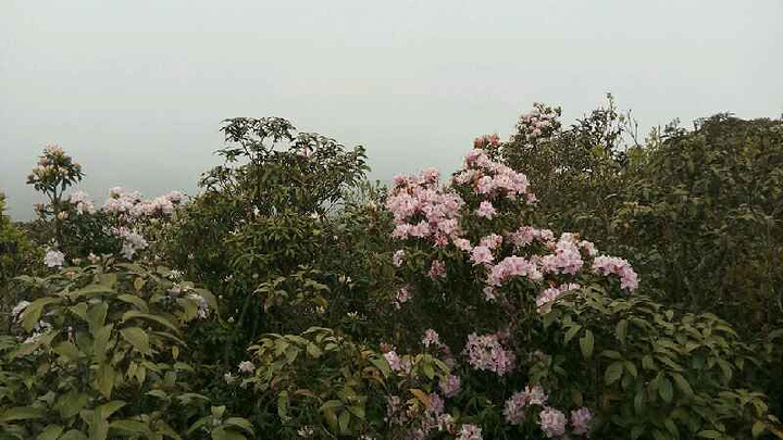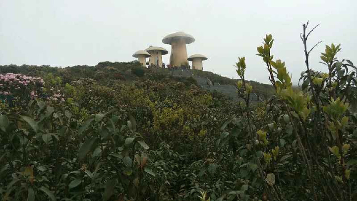正所谓山花烂漫,星星点点的各色杜鹃散落在山坡上,远看更美!就是越往高处走风越大,最终没有勇气爬到菌子峰,唯恐人被风吹走!周六下午两点左右到的,没想到进景区的路被沿路停放占到和上上下下的车堵死,一直堵到下午18点景区的车基本走完,只有找家农家乐住下,50元一晚,还好,有热水,只是吃的一般,勉强将就一晚。第二早一早进景区,游人以一波接波的速度涌入,在景色好的地方要拍个独照就很困难了。建议有时间的朋友别赶周末去!