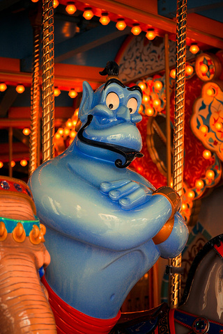 小学时超爱的人物,阿拉丁精灵,当时甚至傻乎乎地把Disney原版邮票贴到笔盒上面.......如果周围没有别人的话,是想坐这个旋转木马玩一下的....应该勾起无数快乐的童年回忆。每到这个时候就感慨没有妹纸的弊端,如果是和女朋友一起去,那这都不是问题了(脑补出妹纸无奈地在场边喝饮料,我手舞足蹈地转着第N圈的情景....)