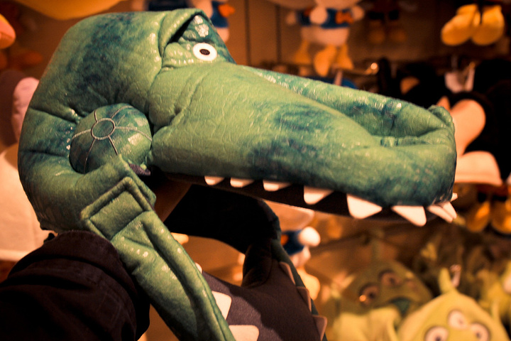 这个帽子犹豫了很久,有好几个款式,但是就喜欢这个张大嘴的,脑袋后面还有一个食指大的恐龙的身体和尾巴,很萌的