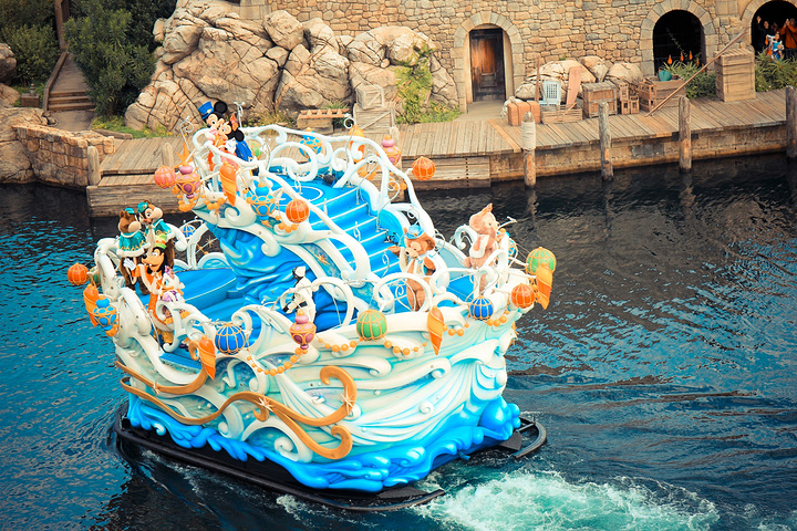 每过一段时间Disney的主角们会坐这只船到岸边表演,提前就会有人群在岸边排好队,现场气氛还蛮赞的,不过还是以带娃的为主.....