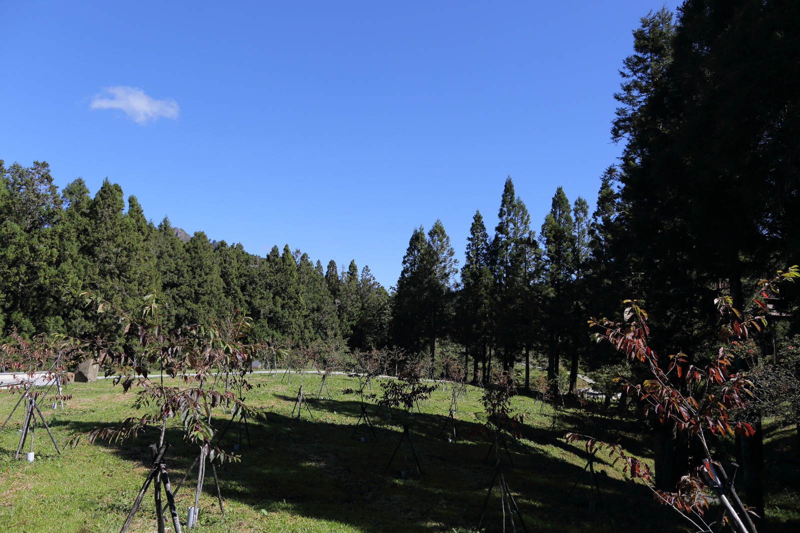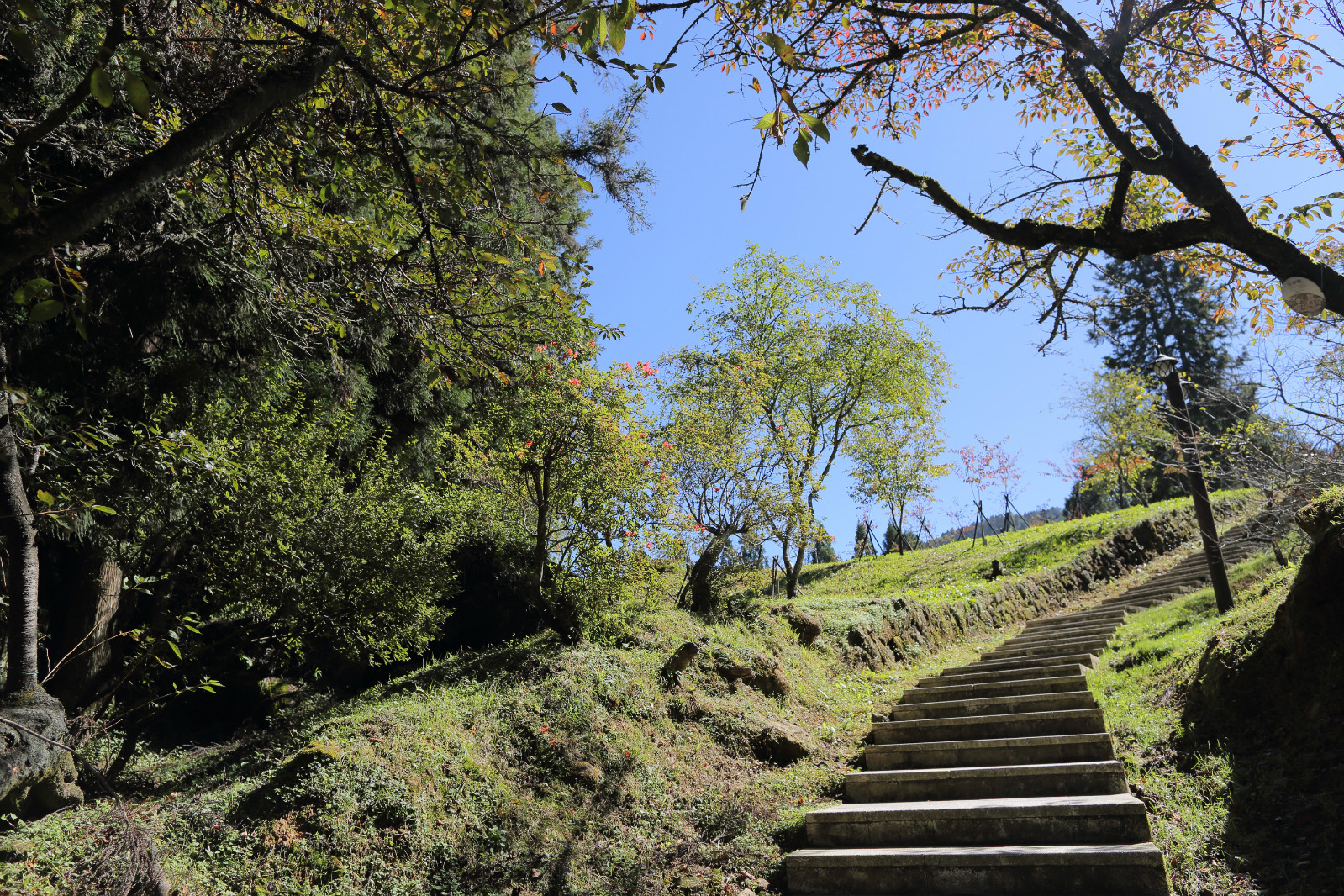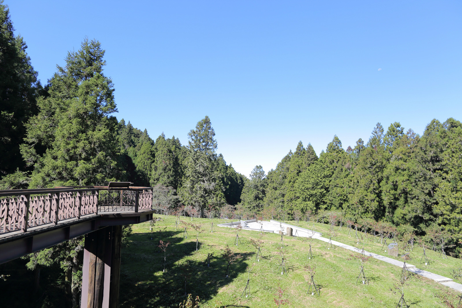 沼平公园是我徒步阿里山时候发现的美景,如果你到阿里山只是坐小火车游览,依次搭乘小火车到阿里山火车站—沼平火车站—神木火车站,虽然省时省力,你很可能会错过美景哦!因为公园位于沼平火车站至阿里山景区门口的中间。重点是:除了樱花季,这么漂亮又宽阔的公园,居然没有什么人来!【景点简介】沼平公园是阿里山赏花景点中视野最辽阔的地方,公园了种植了很多高山植物和花,每年到春暖花开的季节,这里百花齐放,吸引了很多人上山来赏花。【环境评价】公园遍布高大茂盛的树木,而且种植了很多花树,其中最多的是樱花树。很可惜,我是10月去台湾,没能一睹繁花盛开的景象。不过公园本身就很漂亮,而且最有特色的是高空赏花,公园里架起了2层楼高的赏花木栈道,便于欣赏到公园里高大的树木和花树,而且在木栈道上远眺群山画面更宽阔,这是在其他植物公园里很少有的体验。【特色推荐】高空赏花步道,吉野樱。【开放时间】属于阿里山园区范围,全天开放。【交通】步行:从阿里山景区门口开始步行15分钟可到达。火车:搭乘阿里山小火车到沼平车站,下车后往回走5分钟。【门票】通用阿里山森林游乐区门票:节假日200台币/人,非节假日150台币/人。【建议游览时间】10月份没有樱花,我只在栈道上走了一圈看风景,20分钟足矣。