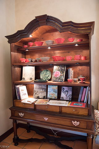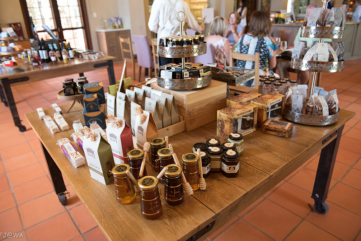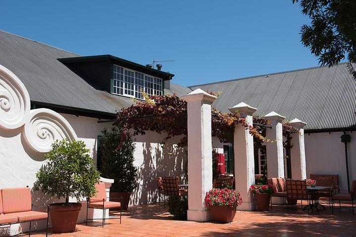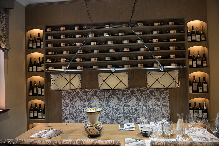 走进里面是个餐馆,服务员告诉我们不用餐的话可以穿过走廊去前面品酒,走廊两侧都是画,看不懂。漂亮的房子