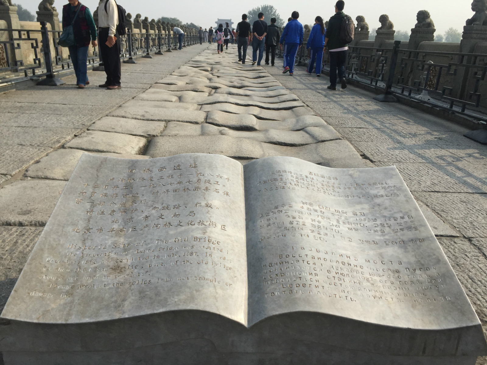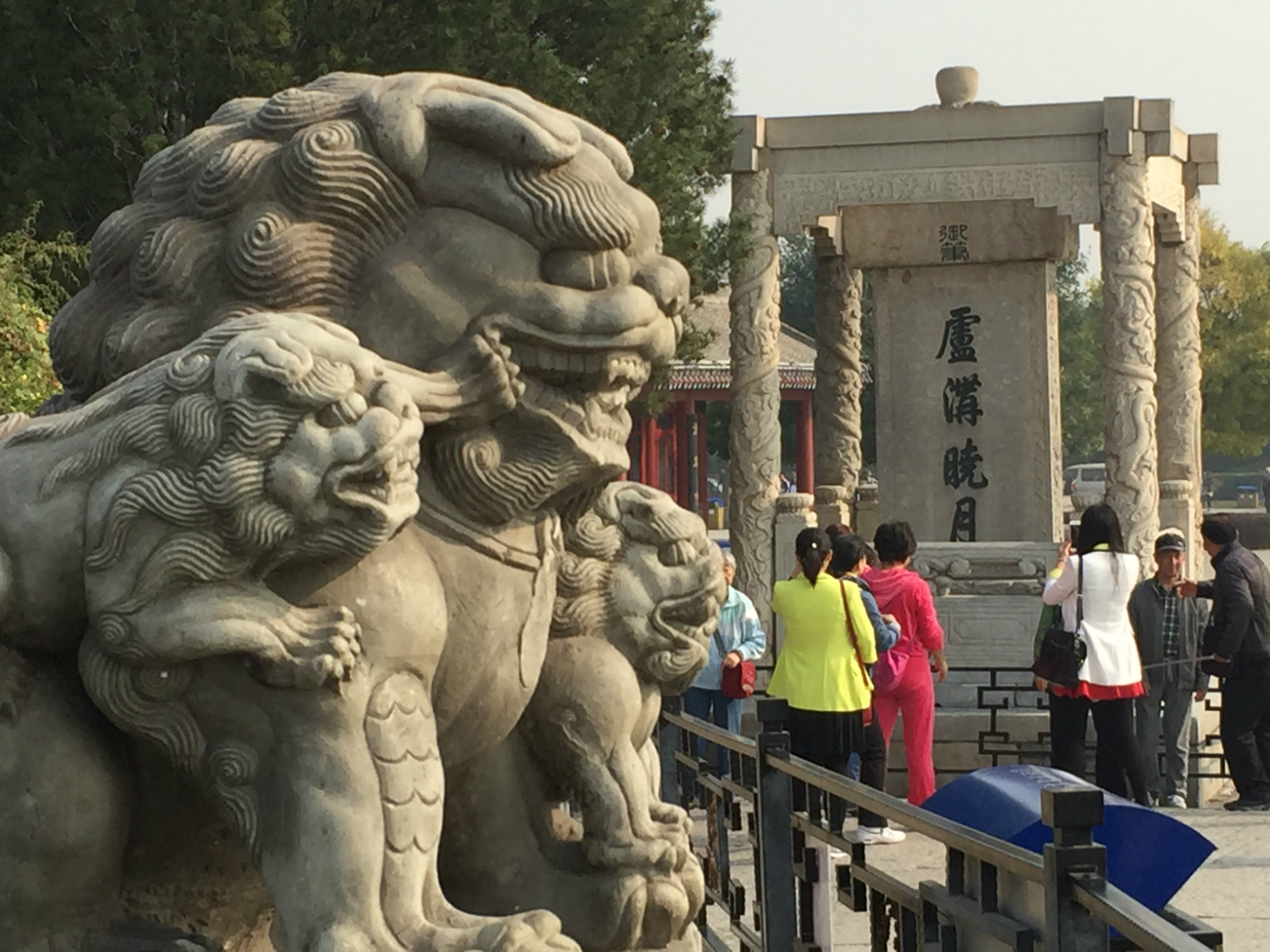 参观卢沟桥老少咸宜,大家对卢沟桥姿态各不相同的石狮子十分有兴趣。建国后卢沟桥又进行了维修