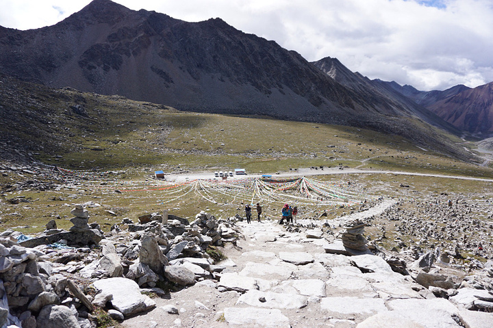 酒店隔壁有一家小吃店,包子油条稀饭早餐过后,我们出发前往位于加查县城东北部的神湖拉姆拉措,据说有缘的人看到她就可以看到自己的前生和来世,神湖深居在海拔5080米的山上,今天可以称为有生以来的海拔高度挑战了。沿途风景照旧是美不胜收,多云的天空,大白行驶在云里雾里的盘山公路中,这里颇似九寨黄龙的美,沿途会时时停下留影。潺潺溪流,袅袅炊烟,当然还有随着海拔的升高,我们深深的喘息,不时有野牦牛成群结队的在山坡上游走。 汽车到达山前的停车场,我们一行5人开始徒步向5000米以上的高度攀登,这绝对是我长这么大以来最具有纪念意义的人生海拔高度,也是我面临的最艰巨的体能和毅力的挑战,我从来没有这么清楚地感受到我的心脏是时刻跳动着的,因为她的速度之快好像是下一刻就会骤然停止!开始我还希望能一直跟随司机师傅的速度向上行进,但是注铅一样的腿已经不听使唤了,过了一会我发现师傅竟然已经返程了,他鼓励我们坚持走上去,也提醒我们天气开始有变化了,要注意安全。既然来了,一定要拜拜这神秘和神圣的湖(建议大家根据自己的身体状况决定)。终于我们4个人走到了那可望可及的高度,看拉姆拉措!