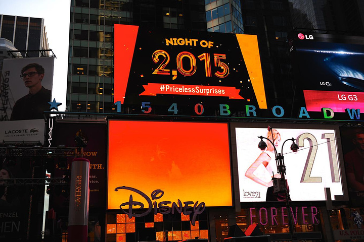 建议提前在网上买好票,直接打印出来带着就好了,门口就有扫码的机器,也不用去换票,非常方便。票嘛,建议在推荐的网站买,反正支付什么的都挺方便,位置尽量选一个好点的,不一定要最贵的那种,中上的票价就能保证不错的位置了。看之前如果对这个不是很了解的话,可以先看看中文版的介绍,对故事情节有一个大概的了解。总之我觉得这1200左右的票价还是非常超值的!演员都非常认真,舞台效果也很棒~再加上小伙伴本来就是搞音乐的,所以我俩都看得很high~看完《妈妈咪呀!》我俩就步行回酒店了,只用走5分钟,突出一个方便~明天就是新年了,时代广场已经开始热闹了起来