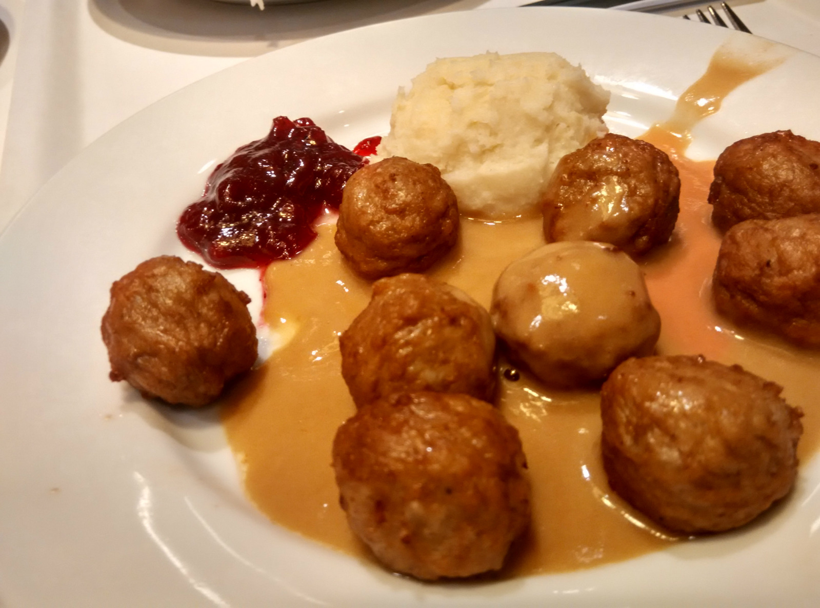 招牌的瑞典肉丸子,肉丸子炸的很好,配芝麻蓝莓酱,口感混搭,这是宜家最畅销的一款餐食,楼下食品区有卖冷冻的肉丸子的可以回家加工,蘸料也有的卖。12个16块5,也不太贵。