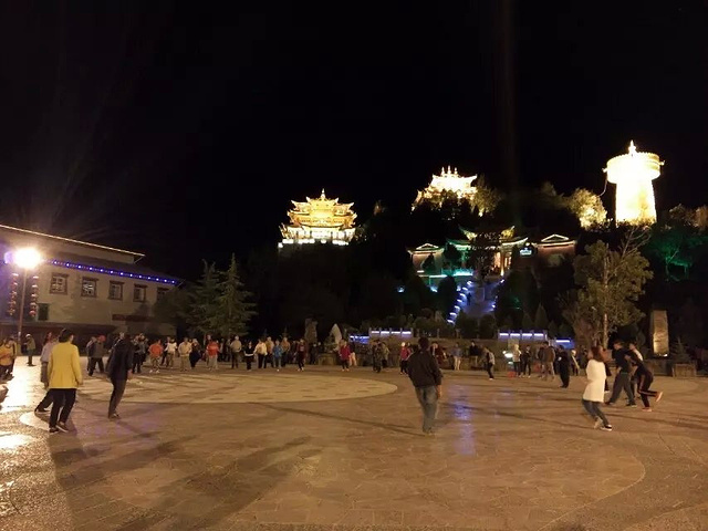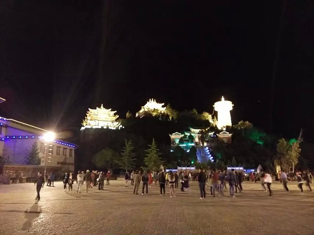 晚上就去逛了逛月光古城 独克宗,那年那场大火实在是可惜了,现在的古城依旧在重建当中。。。 月光广场上有很多人在跳舞。。。 龟山公园可以上去转转,有个很大很大的转经筒,很多人才转的动,记得要转3圈哟。。。