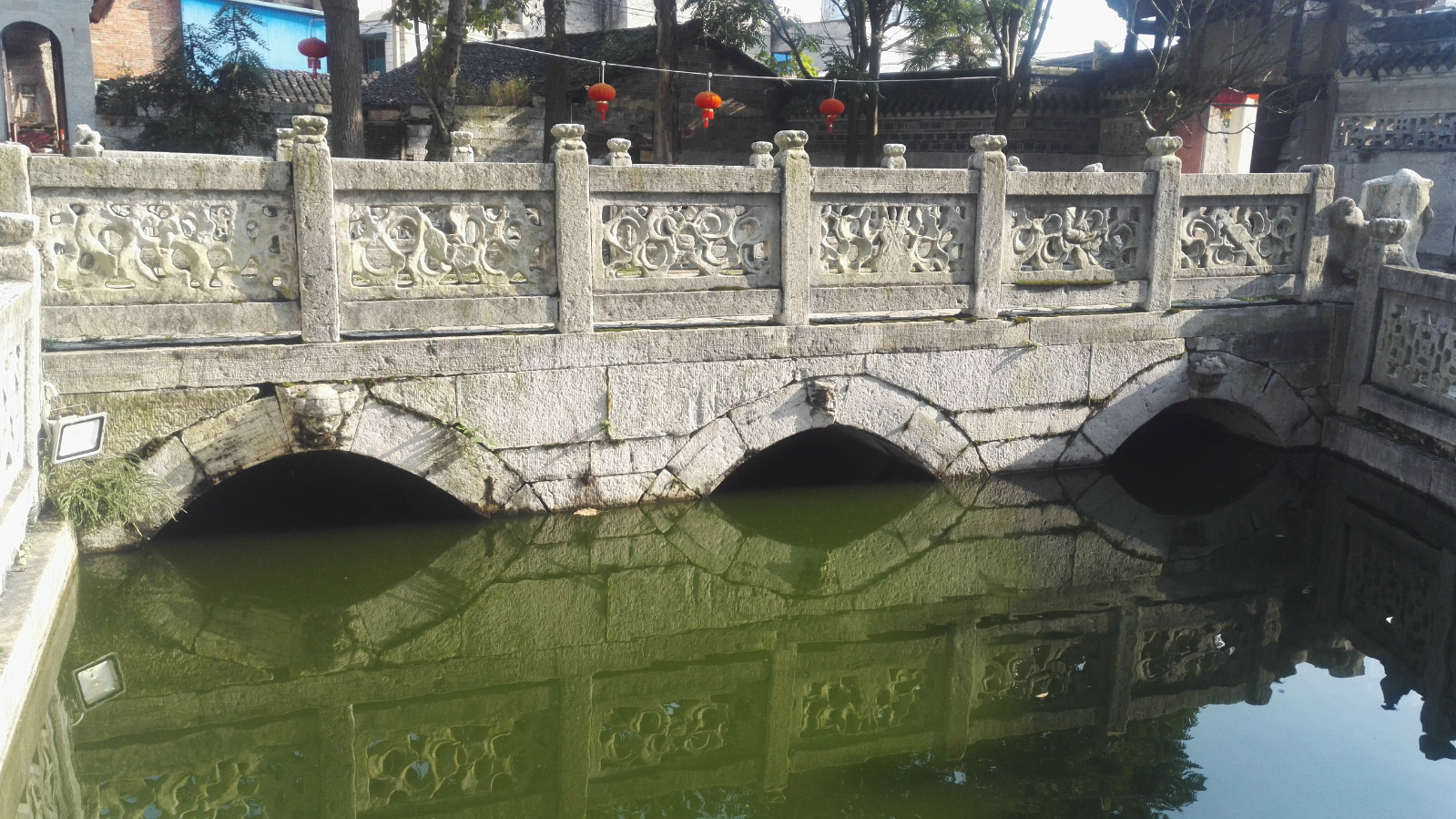 泮池上一般有石桥,或拱或平、或三座三洞、或单座多洞不等,被称为泮桥,安顺文庙内泮桥为单座三洞。