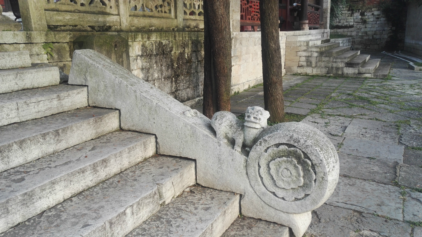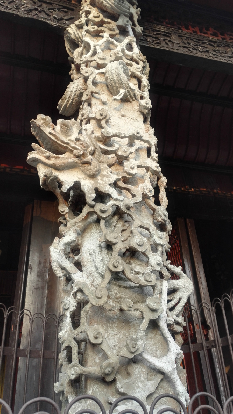 两条镂空雕石龙宛如从天而降,与大成门外的另两根石龙柱,同被称为“文庙四大石雕瑰宝”。