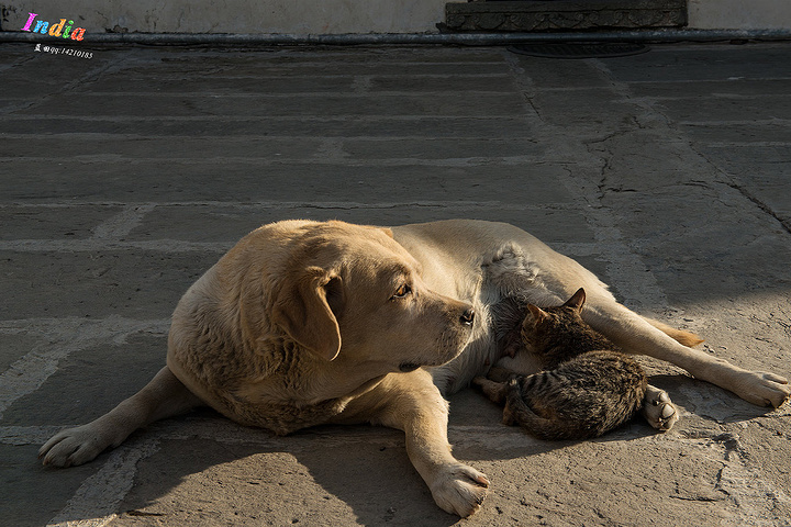 这是一只很有爱的狗狗,正在哺育一只没有奶的小猫。任何爱,都可以破解国界,种族,性别,还有生物类别!爱是相通的,无界限的,不是吗?